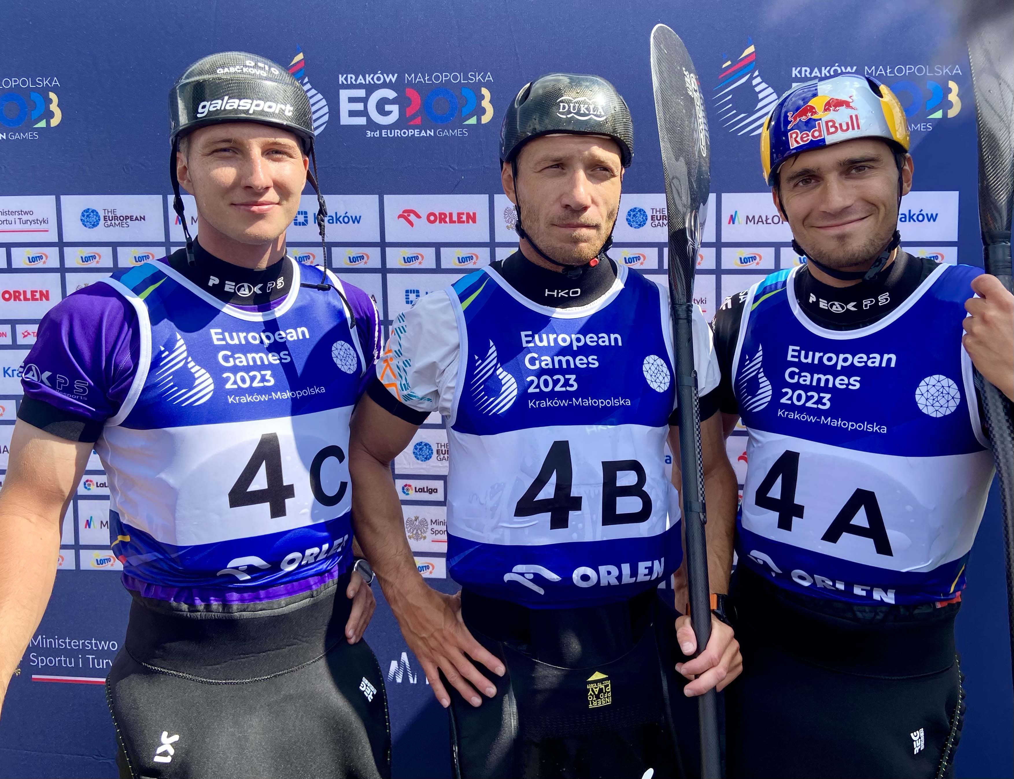 Zohratý tím slovenských kajakárov v zložení Jakub Grigar, Martin Halčin a Adam Gonšenica už vie ako chutí veľká medaila. Pred dvomi rokmi na domácich majstrovstvách sveta stáli v tomto zložení na striebornom stupienku. Rovnako však ako minulý na európskom šampionáte v ich rodnom Liptovskom Mikuláši, kde ich jeden dotyk stál medailu, ani v poľský Krakov im nepriniesol medailovú radosť. Päť dotykov na bránkach za 10 trestných sekúnd ich odsunulo na 9. miesto. ,,Ja by som to nevidel tak zle,“ zhodnotil Jakub Grigar. ,,Urobili sme chybičky. Keď sme prišli do cieľa a videli sme 10 trestných sekúnd boli sme celkom prekvapení, keďže sme vedeli o troch dotykoch, čo je aj tak dosť a s takouto jazdou sa nedá vyhrať medaila,“ dodal Jakub. „Sme zohratí na trati, ale dnes to bohužiaľ nevyšlo,“ povedal Adam Gonšenica. „Na tréningu nám to išlo lepšie ako na pretekoch. Ale dnešný deň celkovo nebol jednoduchý, pretože sme sa doobeda všetci sústredili na individuálny výkon a následne nie je jednoduché ísť do partie a prechádzať bránky ako tím v trojici,“ doplnil ho Jakub Grigar. Naša trojica skončila z odstupom 11,92 sekúnd na víťazných Španielov. V Krakove nepochodili ani obhajcovia európskeho titulu. Český tím na čele s olympijským víťazom Jiřím Prskavcom inkasoval na jednej z posledných brán trate 50 trestných sekúnd za nesprávny prejazd a skončil na 14. mieste.